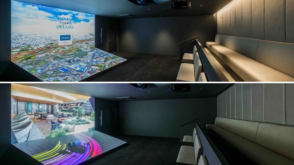 東京ドーム5個分・約23.9haのスケールを誇る、横浜最大級の土地区画整理事業のマンションギャラリー。外部から、商談空間や地域に開かれたイベントスペースを臨むことのできる平屋建ての設計が特徴。植栽やグリーンのカラーをアクセントに、解放感のある居心地の良い空間をデザイン。演出では開発の魅力を最大限に発揮できるジオラマシアターを採用した。